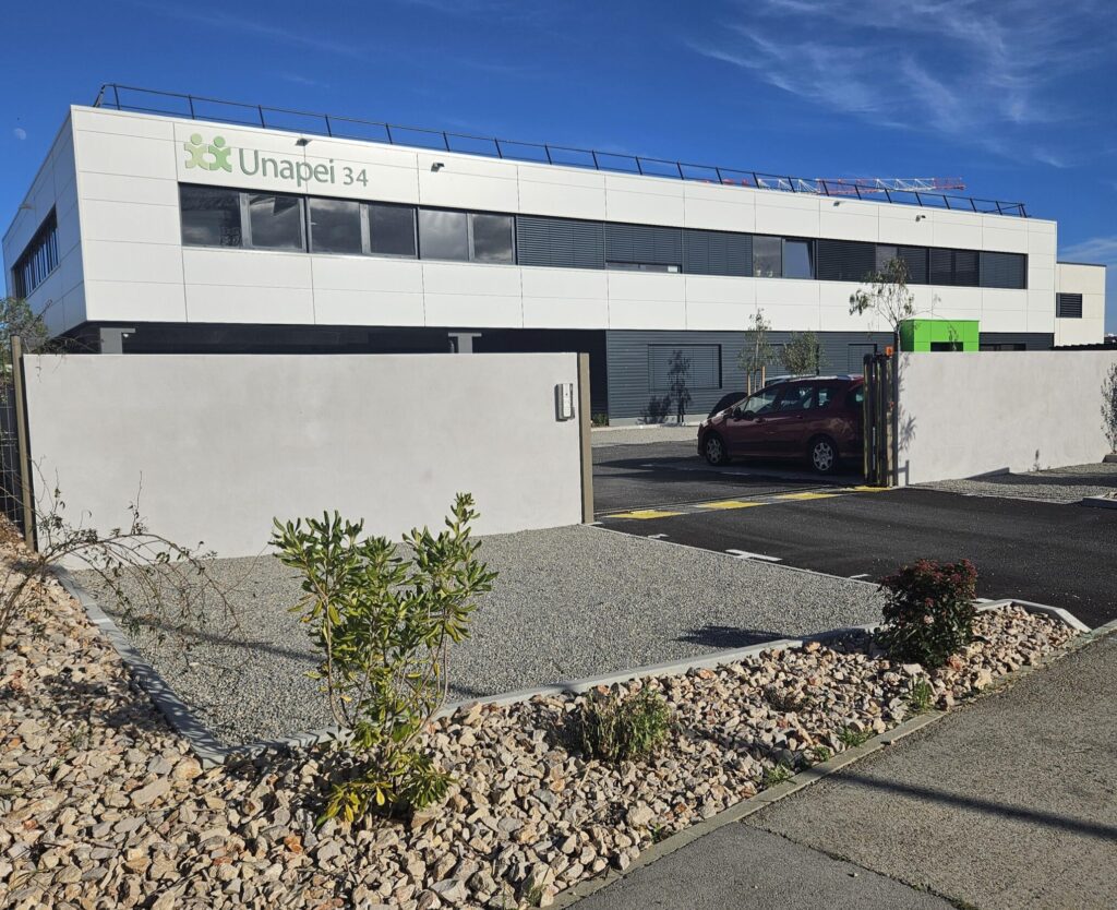 FAIRE UN DON Retour à la liste des actualités 13 janvier 202626 février 2026 Le 7 janvier, l’Unapei 34 a officiellement inauguré son nouveau siège social à Grabels. D’une superficie d’environ 1 300 m², ce bâtiment contemporain constitue un tournant majeur dans le parcours de l’association. Conçu pour accompagner sa montée en puissance, il vient soutenir et structurer l’action menée auprès des enfants, des adultes en situation de handicap mental et de leurs proches. SIX DÉCENNIES D’ENGAGEMENT ASSOCIATIF Association loi 1901 reconnue d’intérêt général, l’Unapei 34 est née du regroupement progressif de plusieurs organisations issues du mouvement parental : l’Apeai de Montpellier, l’Apeai Font Trouvée, l’ALPAIM et l’Apei Pays de Thau. À la suite de la fusion entre l’Apei du Grand Montpellier et l’Apei Pays de Thau, la structure adopte officiellement l’appellation Unapei 34 au 1er janvier 2018 et engage une nouvelle phase d’organisation fondée sur des principes démocratiques et une gouvernance renforcée. Membre de la Fédération Unapei, l’association agit depuis près de 60 ans en faveur des personnes en situation de handicap mental. Elle s’appuie aujourd’hui sur un réseau de 33 établissements et services, plus de 860 professionnels et accompagne quotidiennement près de 1 300 personnes dans l’Hérault. Son ambition est clairement affirmée : défendre les droits, améliorer les conditions de vie et favoriser l’inclusion sociale de ses usagers. Acteur de référence du secteur médico-social départemental, l’Unapei 34 bénéficie d’une reconnaissance institutionnelle et médiatique sur les enjeux liés à l’accompagnement des enfants et des adultes en situation de handicap. Pour Joffrey Henric, Directeur Général Adjoint de l’ARS Occitanie, « Les moyens dédiés aux politiques de l’autonomie sont contingentés dans la période budgétaire actuelle qu’on connaît, dans les priorités gouvernementales et que, pour autant, ces montants alloués, ne servent seulement pas au financement des actions, mais à la construction des politiques de l’autonomie et à la consolidation du ciment social, que constitue l’inclusion des personnes vivants avec un handicap : ce sont des financements qui demeurent extrêmement importants. Ces investissements sont importants pour que les associations gestionnaires et militantes puissent conduire ces politiques en faveur de l’autonomie et de l’inclusion des personnes en situation de handicap« . UN OUTIL CENTRAL AU SERVICE DES MISSIONS DE L’ASSOCIATION Bien au-delà d’un simple espace administratif, ce nouveau siège se veut un véritable levier stratégique pour piloter, coordonner et soutenir l’ensemble des activités de l’association. Pensé comme un lieu ouvert et fonctionnel, il favorise la concertation avec les familles, le dialogue avec les aidants et la synergie entre les équipes. Patricia Weber, Vice-Présidente déléguée à la solidarité aux personnes et à l’autonomie au Département de l’Hérault, a salué la portée territoriale de ce projet structurant, rappelant l’engagement constant de l’Unapei 34 auprès des publics les plus fragiles et de leurs proches : “Ce moment marque une étape importante dans le développement d’une association qui occupe une place essentielle dans le paysage médico-social de notre département. Ce qui nous rassemble est bien plus fort, c’est la volonté commune de construire des réponses adaptées, de garantir la dignité des personnes et de faire vivre une société plus inclusive”. René Revol, Maire de Grabels et Vice-Président de Montpellier Méditerranée Métropole, a tenu à souligner la place importante qu’occupe l’Unapei 34 sur le territoire communal. Il a également rappelé que l’action sociale en faveur des personnes en situation de handicap traverse actuellement une période de crise aux conséquences bien réelles. L’élu a ainsi insisté sur la nécessité de faire preuve de solidarité afin de disposer des moyens nécessaires pour agir, favoriser une inclusion effective et éviter les déclarations sans lendemain. Et d’affirmer : « c’est notre tâche collective ! Ce que nous inaugurons ici ce soir, c’est finalement un pas en avant dans cette direction » UNE CONCEPTION ARCHITECTURALE ORIENTÉE VERS LE BIEN-ÊTRE DES ÉQUIPES Imaginé par GSE et l’agence GRV Architecture, le bâtiment a été conçu pour offrir des conditions de travail optimales. Les espaces lumineux, les aménagements ergonomiques et les salles de réunion adaptées encouragent la collaboration et l’efficacité collective. Une salle de conférence ainsi qu’un espace dédié à l’activité sportive témoignent de l’attention portée à la qualité de vie au travail. Le projet répond également aux exigences de la réglementation environnementale RE2020, traduisant l’engagement de l’association en faveur d’une démarche responsable et durable. Démarré en novembre 2024, le chantier a été livré en septembre 2025 dans le respect du calendrier initial. Pour GSE, cette réalisation illustre la volonté de concevoir des lieux porteurs de sens, au service d’organisations engagées. Selon Fabien Bonnet, directeur général de l’Unapei 34, « le coût de l’opération est évalué à 4 millions d’euros, financés par le budget du siège, lui-même soutenu par l’ARS et le Conseil départemental de l’Hérault. » Pour Bernard Dessimoulie, Président de l’Unapei 34, « L’inauguration de ce siège marque une étape importante pour notre association. Il incarne notre volonté de donner aux équipes les moyens d’agir et d’innover, afin de répondre toujours mieux aux besoins des personnes accompagnées et de leurs familles. Ce projet est le symbole de notre engagement collectif et de notre détermination à bâtir une société plus inclusive. » Visionnez la construction du Siège So