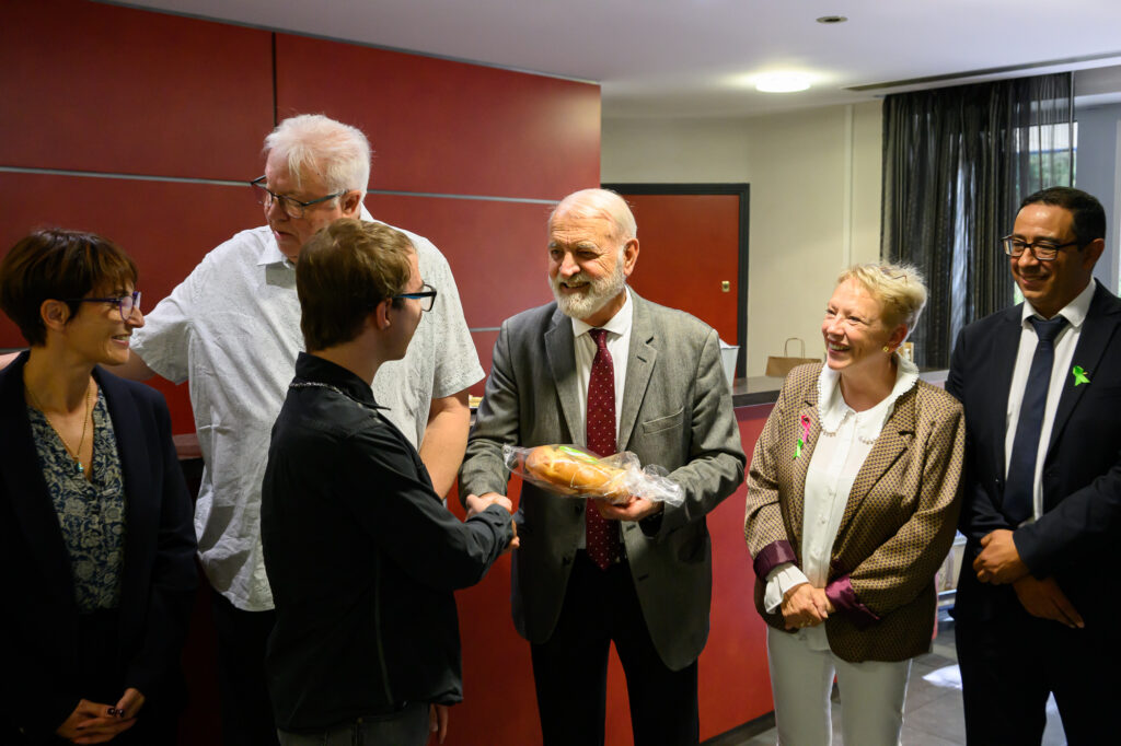 FAIRE UN DON Retour à la liste des actualités 17 décembre 202526 février 2026 Crédit photo : Philippe Hilaire – Département de l’Hérault Le Président du Département de l’Hérault, Kléber Mesquida, accompagné de Patricia Weber, Vice-Présidente déléguée à la solidarité et à l’action sociale, a reçu, le 13 octobre, dans les locaux du Conseil Départemental de l’Hérault, la délégation des membres de Unapei 34. Cette délégation était représentée par : Bernard Dessimoulie, Président de l’Unapei 34 ; Jacques Mallet, Président-Adjoint de l’Unapei 34 ; Caroline Richard, Directrice du Pôle Hautes Garrigues ; Corentin. D, travailleur en ESAT. À cette occasion, une remise symbolique de brioche a eu lieu dans le cadre de la campagne annuelle de solidarité. Cette année encore, le Département réaffirme son soutien à l’Unapei 34 en renouvelant sa dotation avec l’achat de 300 brioches. Ces brioches seront ensuite distribuées à cinq associations du territoire : les Restos du Cœur, la Croix-Rouge Française, Montpellier Business School (MBS), le Secours Catholique – Caritas France et le Secours Populaire Français. Cet engagement témoigne de la proximité entre le Département, les personnes en situation de handicap et leurs familles, unies autour d’un même objectif : promouvoir le bien-être, la dignité et la considération des personnes en situation de handicap mental.